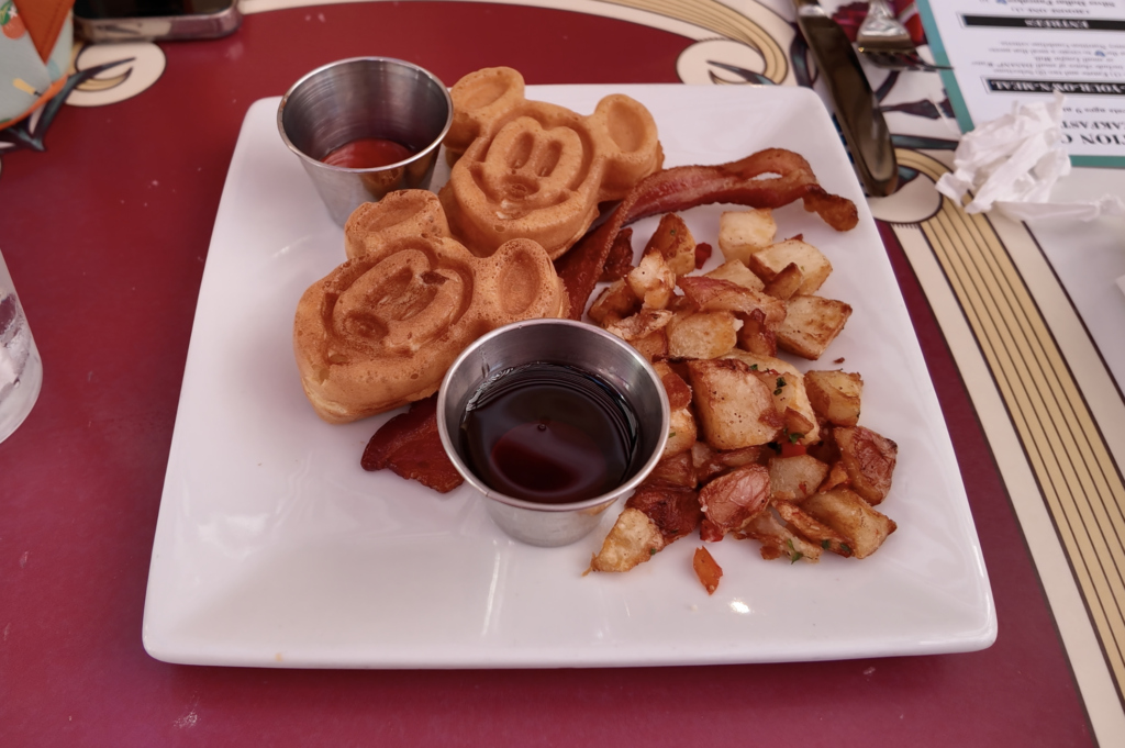 A Main Street classic serving breakfast favorites, sandwiches, and classic comfort dishes. Breakfast is the standout here, especially the Mickey waffles. Adults can order the kids portion, which I think is a better value.